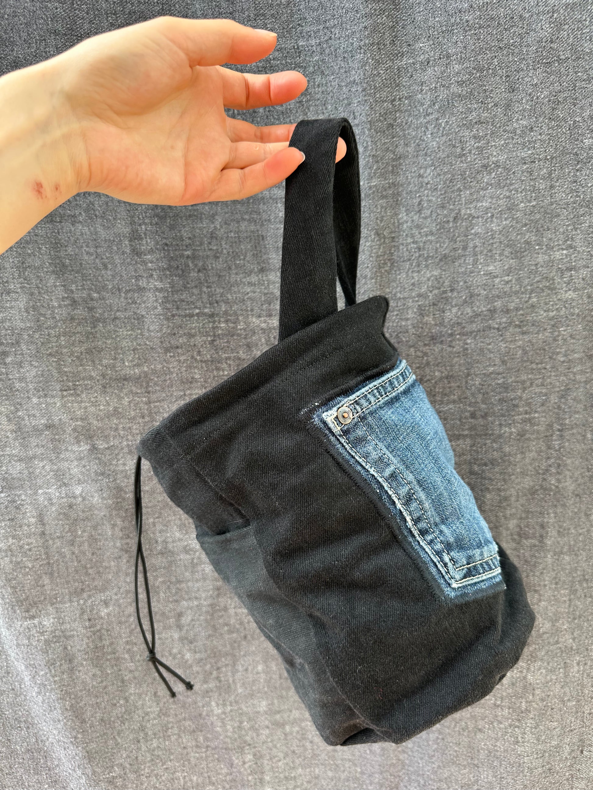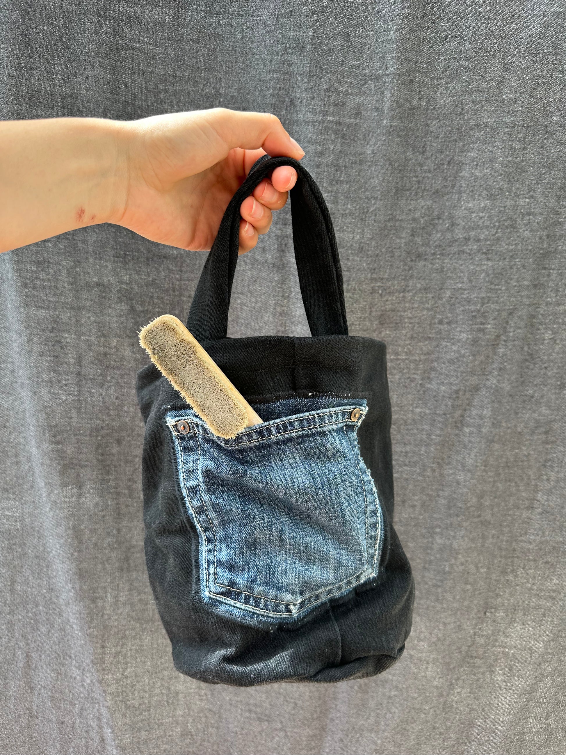 Chalk bucket up-cycled from an old pair of Levis jeans!