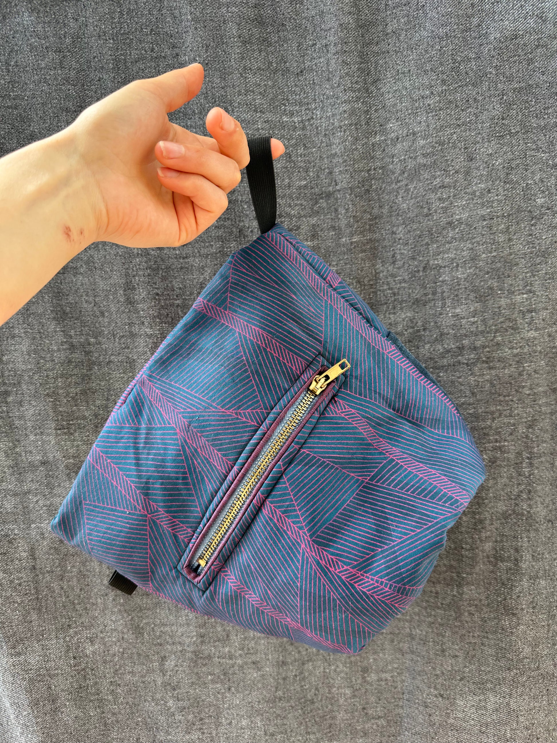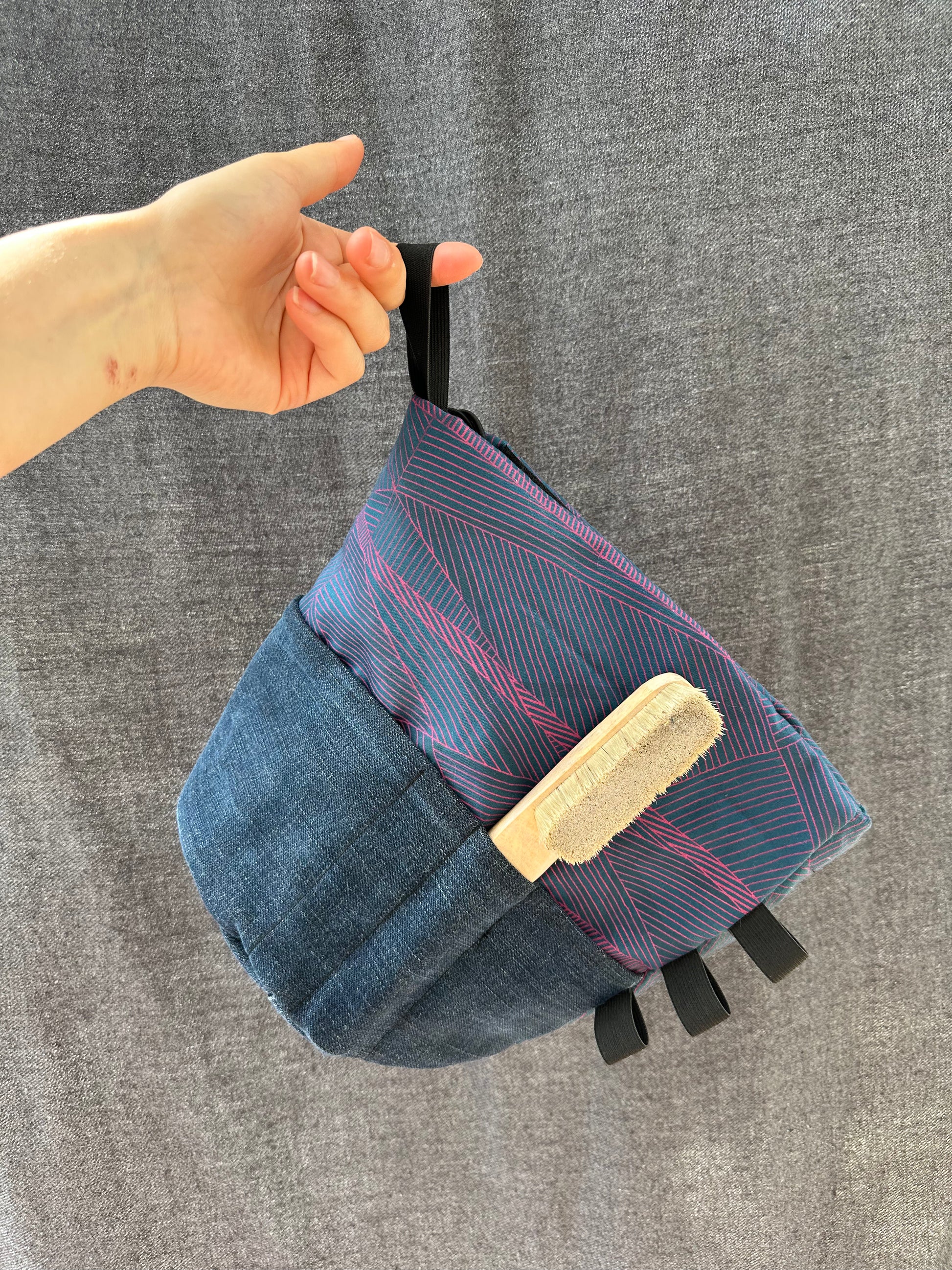 Deep soft lining, zip pocket for phone or tape and brush holders.