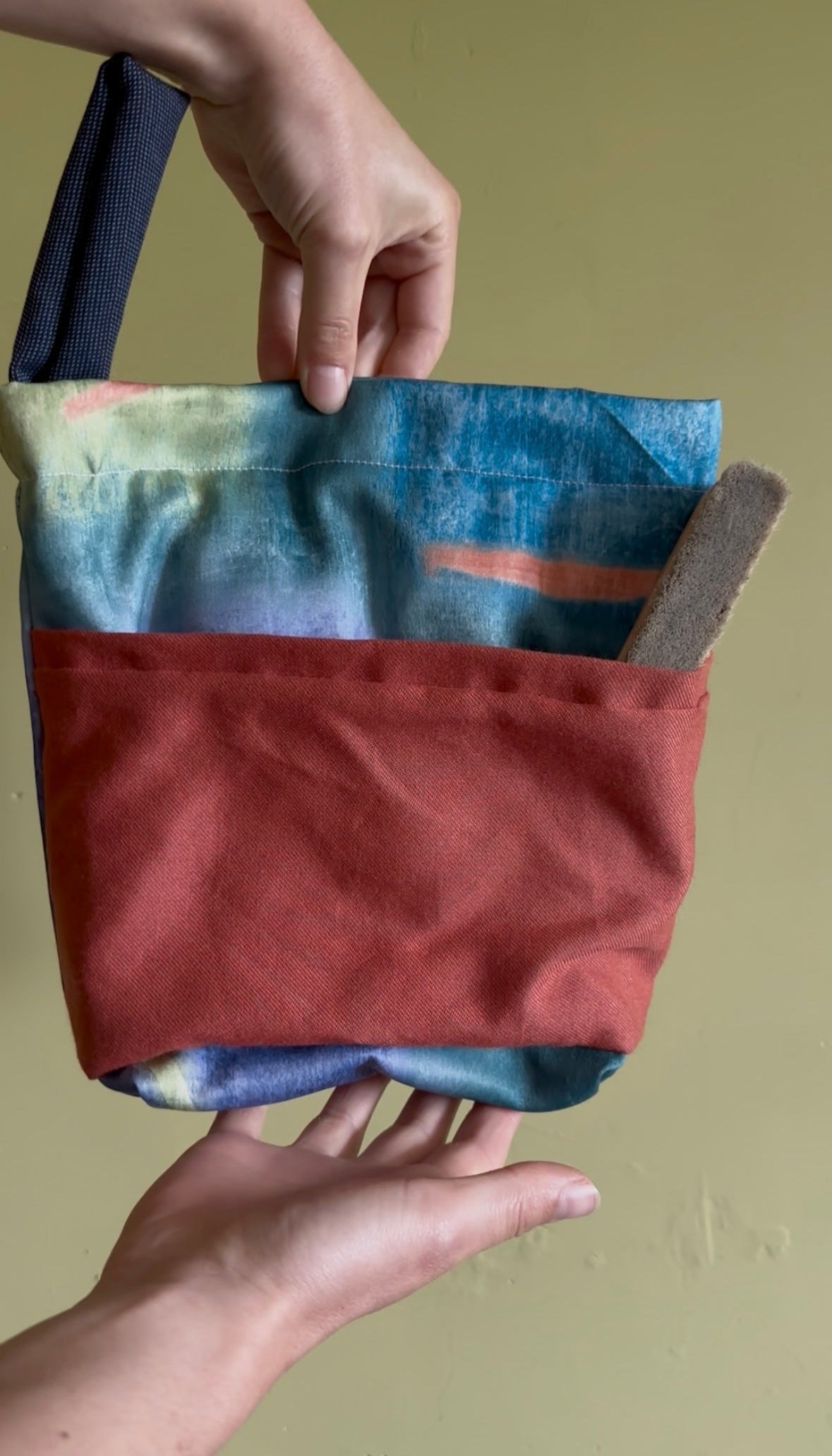A brush pocket on the other side to hold brushes or to lean your hone in to record your sends!